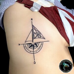 Πυξίδα με πανιά βάρκας τατουάζ