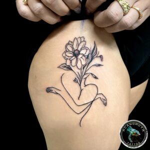 Σκίτσο αγκαλιάς γυναίκας με λουλούδι τατουάζ