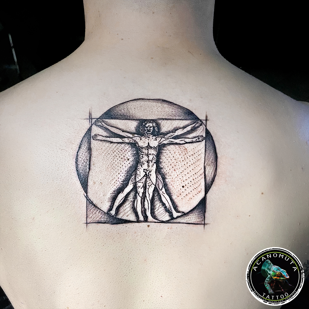Αυτό το τατουάζ έχει αναφορά στην φιλοσοφία της αναγέννησης του DaVinci. Δείχνει την ήσυχη μεγαλοπρέπεια του παρόντος και δίνει έμφαση στην μαθηματική ακρίβεια του ανθρώπινου σώματος.