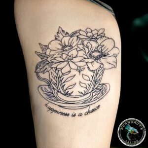 • Φράση έμπνευσης με λουλούδια τατουάζ
